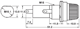 10A @ 250VAC Screw type fuse holder for 3AG (1/4" x 1 1/4") fuses. 55-802-0 Price: $3.80 |