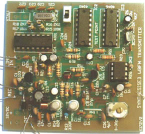 This project is a complete crystal-controlled Wide Band Frequency Modulated (WBFM) transmitter delivering a power output in the order of 10 milli-watts (+10dBm) using simple components. Thetransmitter is based upon the Phase-Locked Loop (PLL) principle, but due to the circuit's simplicity a true "phase lock" can never be achieved. |